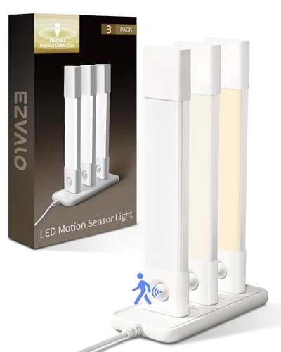 EZVALO 3 Pack Led Under Cabinet Lights Wireless with Charging Station, 7’’ Rechargeable Motion Sensor Light Indoor