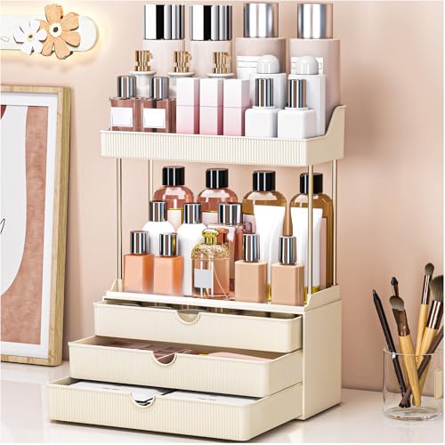 caktraie Bathroom Organizers and Storage - 3 Drawers 2 Tier Makeup Organizer
